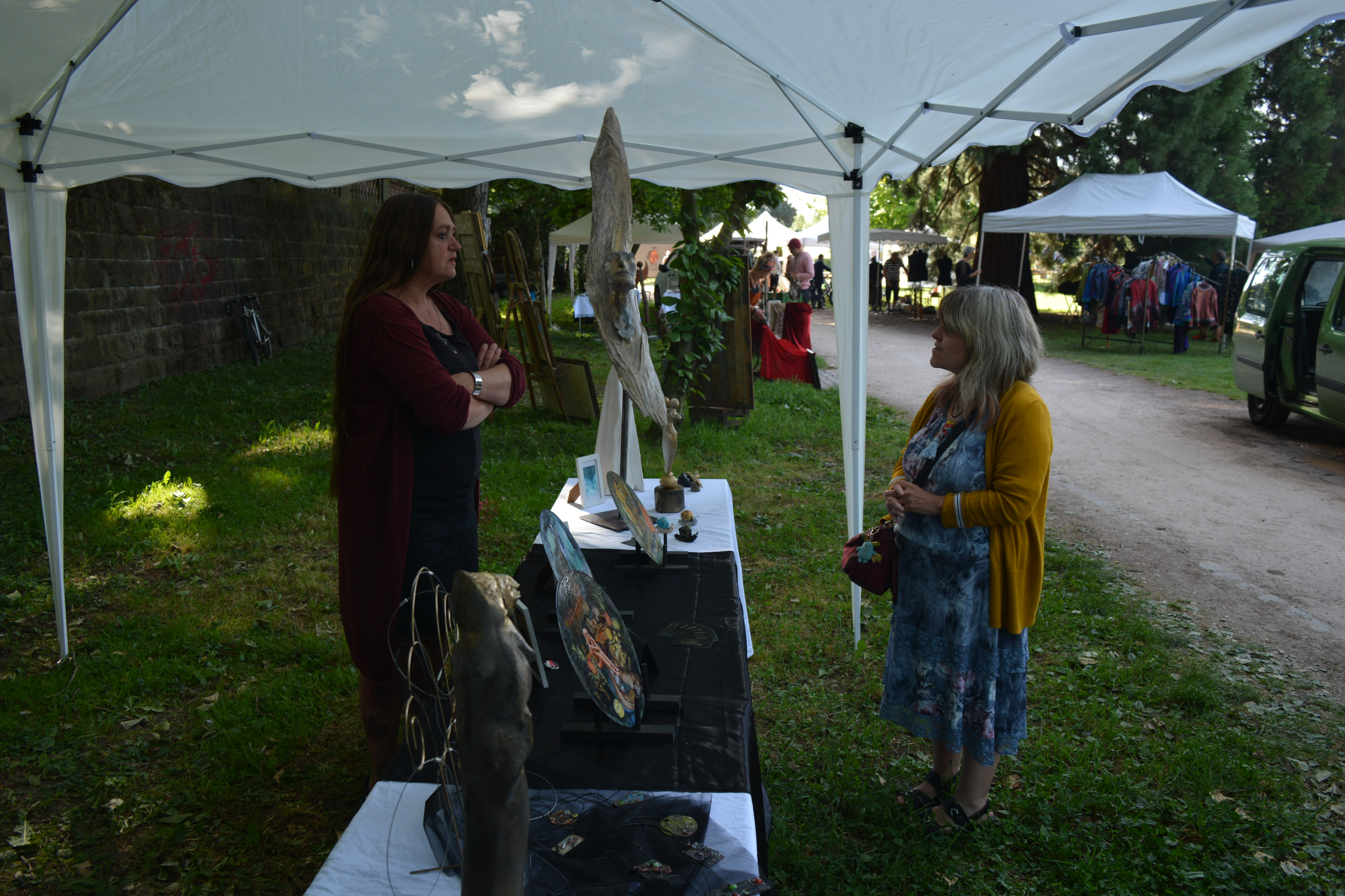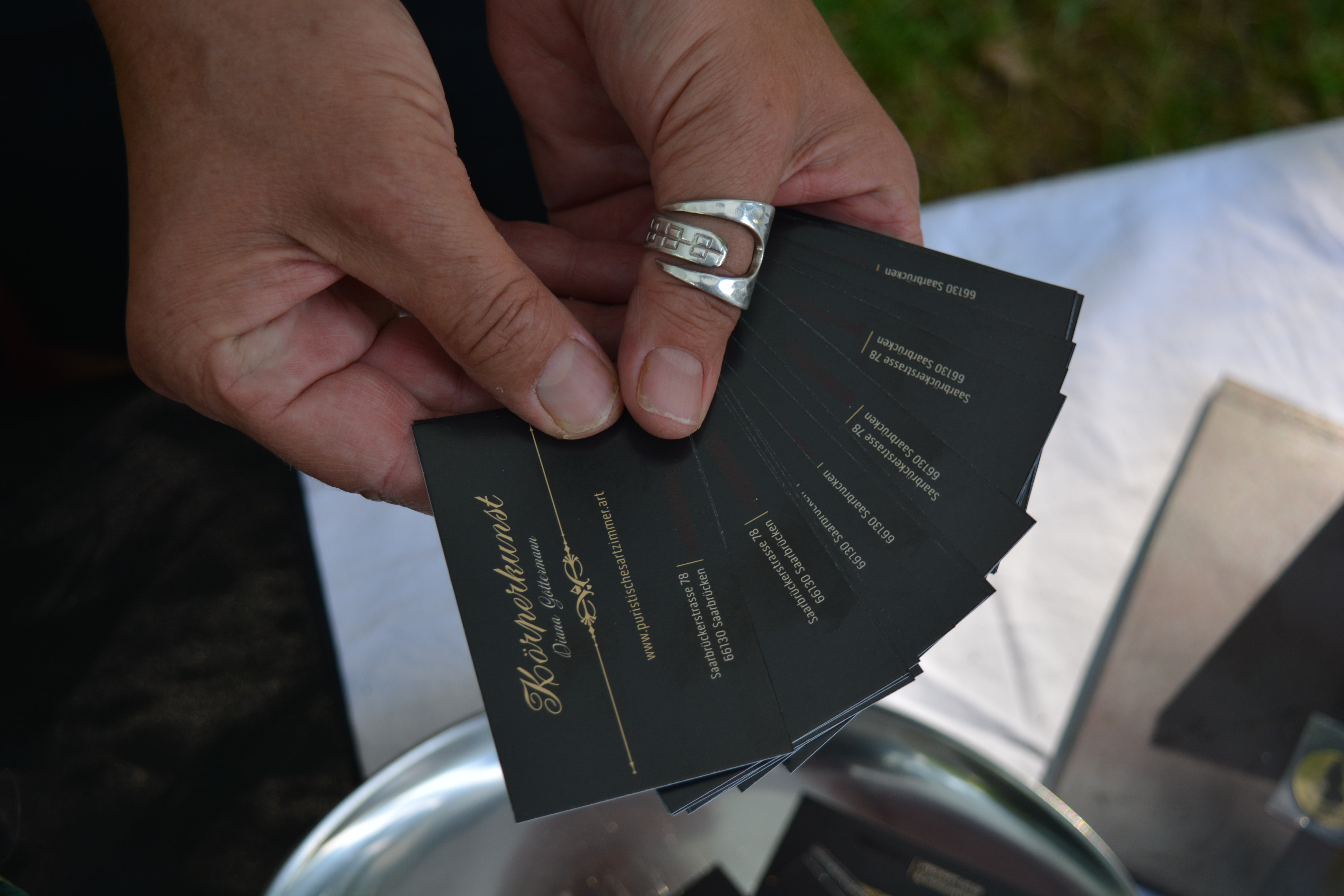 Zum achten Mal wiederholt sich das Kunstevent am Saarbrücker Staden. Jedes Jahr trifft sich die Crème de la Crème der Kunstszene und bietet allerhand Formen, Farben und Kunstwerken zum Bestaunen an. Jung und Alt, groß und klein versammeln sich an jener schönen Grünanlage, um der Kunst den Raum zu widmen, die sie besonders nach Corona so dringend benötigt. So ist insbesondere nach der Pandemie der Andrang groß, da die Kunst nicht ohne diejenigen leben kann, die sie bestaunen. Auch an diesem Sonntag ist es ein besonderes Erlebnis für Künstler und Besucher. Inmitten des Trubels stellt dieses Jahr auch Diana Göttermann aus und bringt ihre Körperkunst an den Staden. Der Kontakt mit Kunstinteressierten ist ein wichtiger Aspekt der Kunst. Die Reaktionen auf die Körperkunst und die Rückmeldungen zu den Neuheiten sind bisher positiv gewesen. Es stellt sich heraus, dass die Kunstrichtung von Diana Göttermann stets einen Blick wert ist, Gespräche entstehen und mit etwas Glück darf das Kunstwerk seinen Besitzer wechseln. Die meisten Stände sind bereits aufgebaut, kurz vor 10 Uhr wurden noch die finalen Handgriffe an den Kunstständen vollzogen und die letzten Autos verlassen den Grünstreifen. Die ersten Besucher beäugen die Stände. Von geschneiderten Kleidern, bemalten Leinwänden bis hin zum Schmuck, Geschirr und Skulpturen sind viele verschiedene Kunststile vertreten. Die Palette ist facettenreich bestückt. Da scheint für jeden was dabei zu sein. Sich mit Menschen auszutauschen und die Reaktionen der Öffentlichkeit wahrzunehmen, ist ein wichtiger Prozess des Kunstschaffens. Inspiration kann aus vielen Quellen gewonnen werden. Es hängt vorwiegend an der Offenheit desjenigen, der sich tief berühren lassen will. Eine besondere Gelegenheit, um Austausch und Inspiration zu erhalten, ist definitiv der Besuch des Kunstevents Kunst am Staden in Saarbrücken.